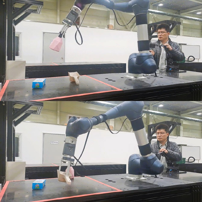 유온로보틱스 리더암 시제품 시연 장면.(사진=시선AI)