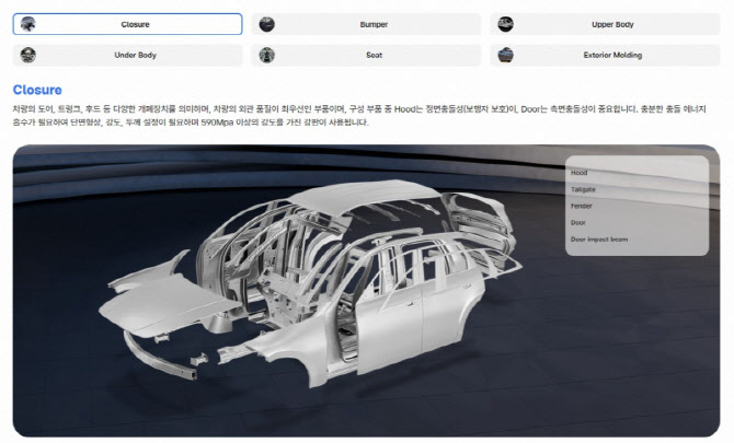 주요 산업에 적용되는 철강소재 부품 정보를 3D 콘텐츠로 제공